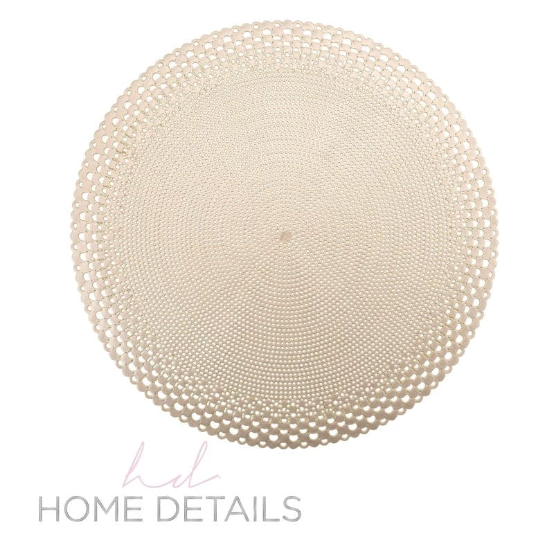 Add the finishing touch to your dining room table with the Home Details Round Saturn Laser Cut Placemat. The unique and glamorous design will add the right touch to help elevate your place settings. These placemats are perfect for your holiday and dinner parties. Create a picture-perfect place setting to impress your guests. The durable PVC material is long lasting and will protect your table from scratches. When done using, they are easy to clean by wiping them down with a cloth. No kitchen table setting is complete without the Home Details Placemats.