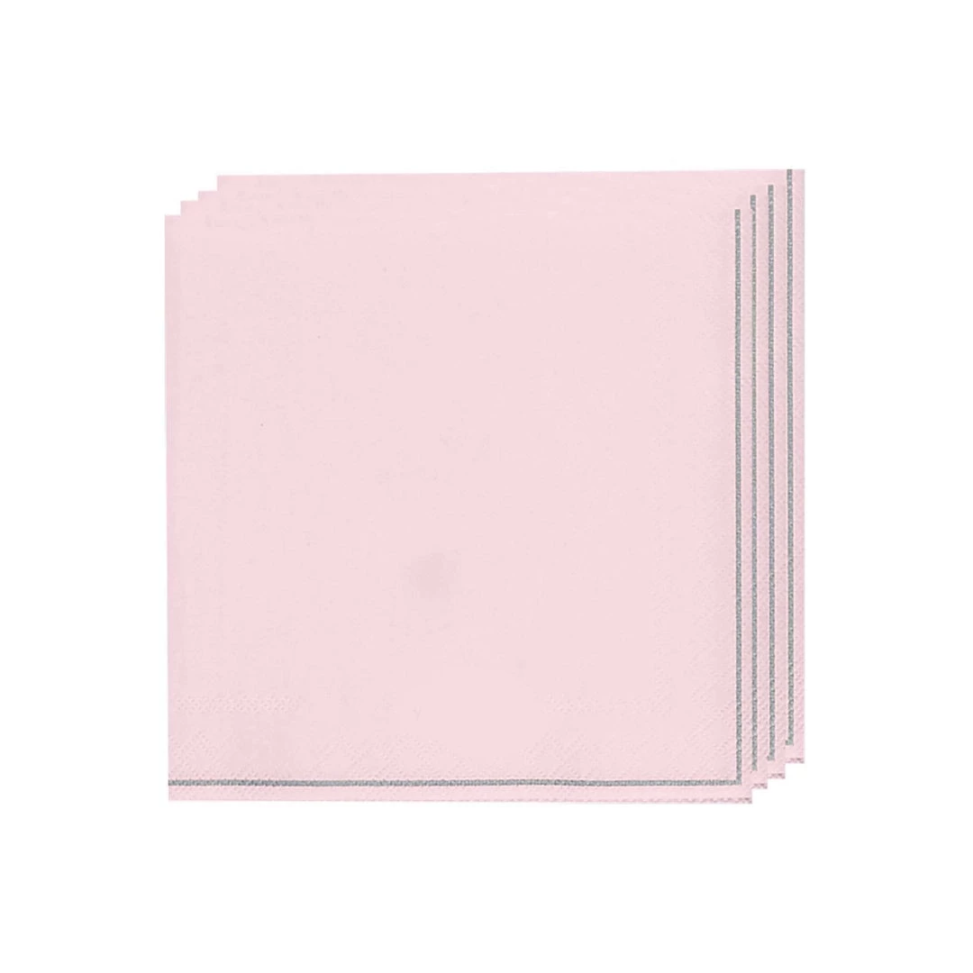 Luxe Party NYC Blush With Silver Stripe Paper Napkins – 3 Available Sizes
