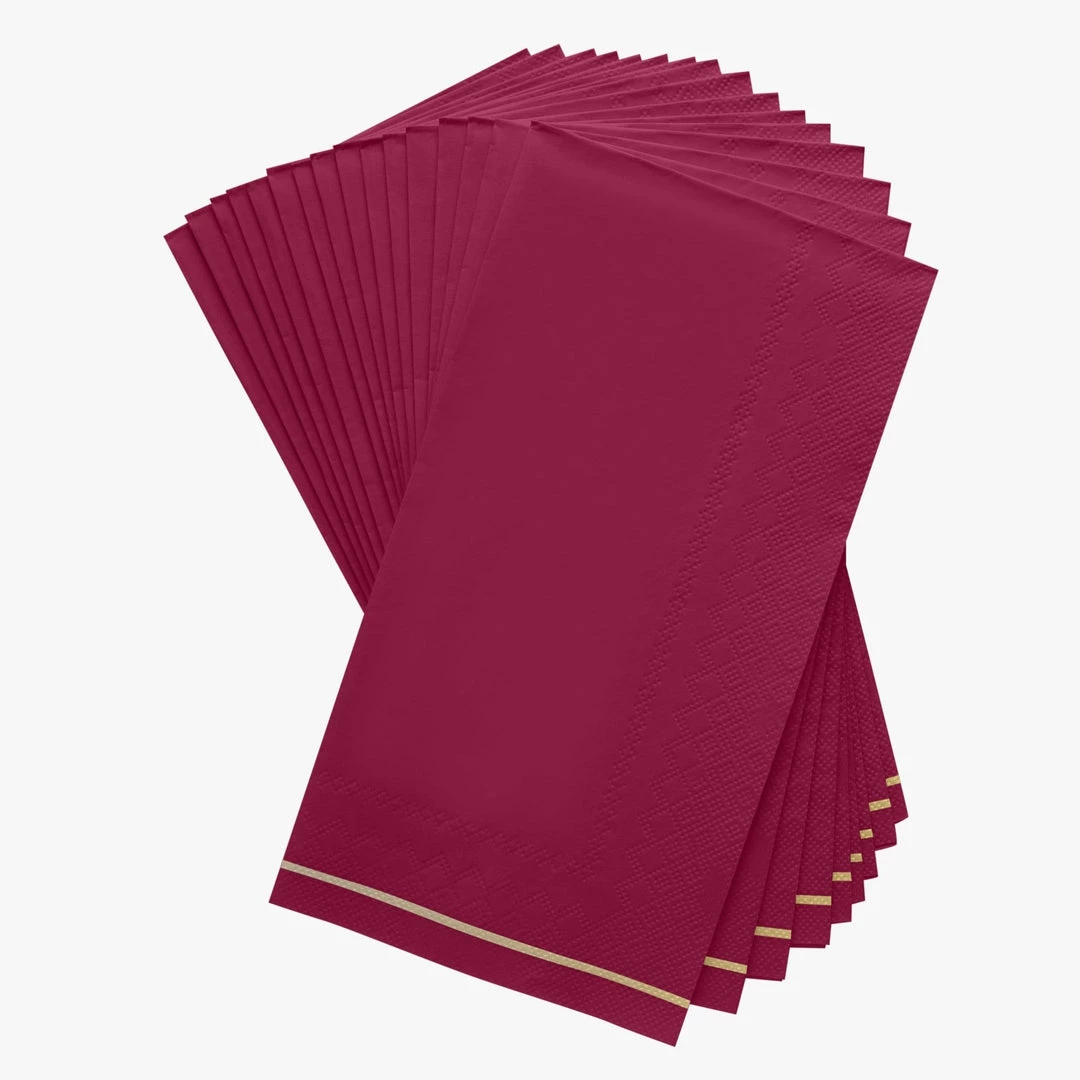 Luxe Party NYC Cranberry With Gold Stripe Paper Napkins – 3 Available Sizes