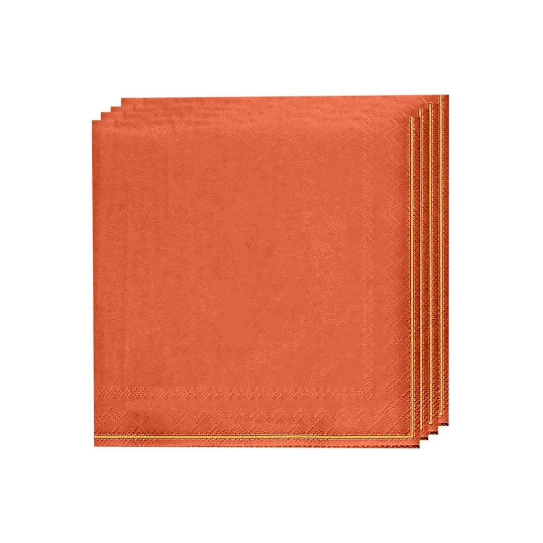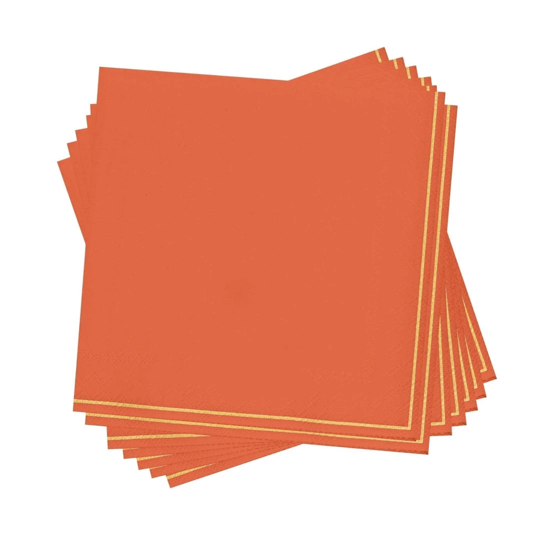 Luxe Party NYC Orange With Gold Stripe Paper Napkins – 3 Available Sizes