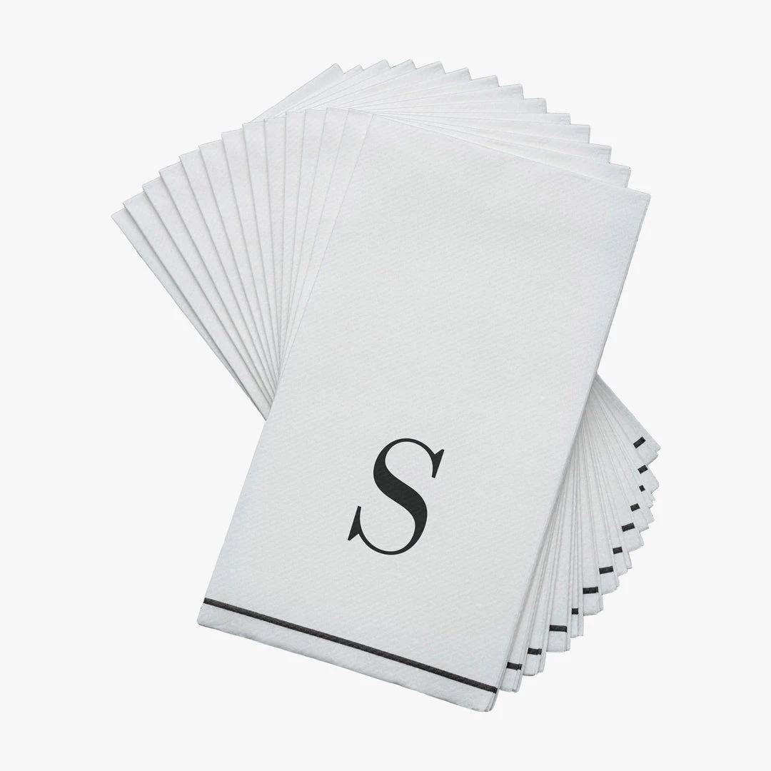 Luxe Party triple-ply, high quality durable napkins are both contemporary in design and durable for use. Innovative in design to elevate any occasion, they feature modern fonts used by the best designers. Our monogram design effortlessly adds a luxurious touch to your guest bath or table. Each is made of triple-ply tissue and printed in Germany with non-toxic, water-soluble dyes and food-safe ink. They are FSC-certified and made using environmentally conscious raw materials, which ensures they are both biodegradable and compostable. Our napkins bring eco-friendly style and convenience to your tabletop.