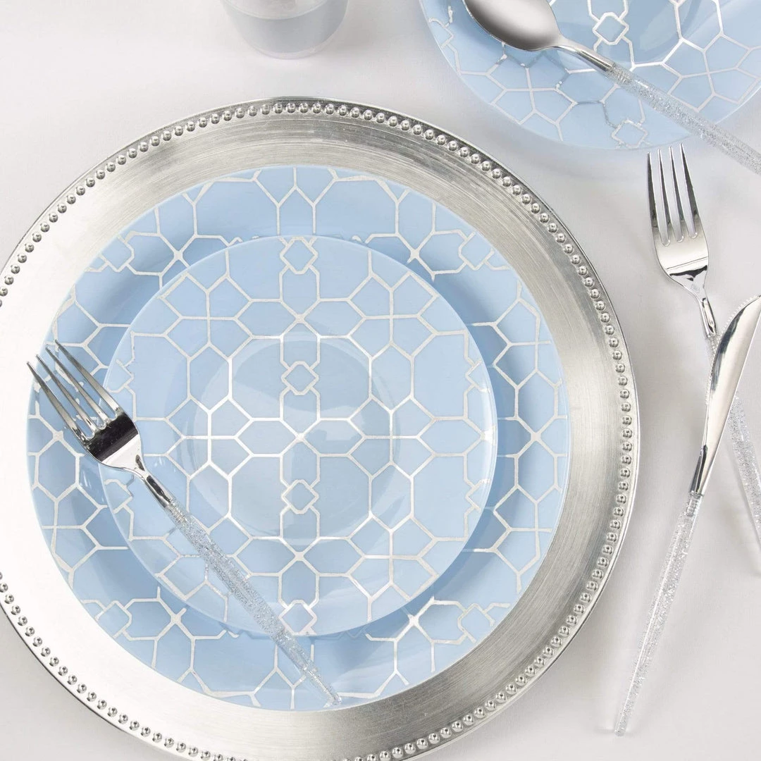 Round | Silver Geo Pattern | Ice Blue • Silver