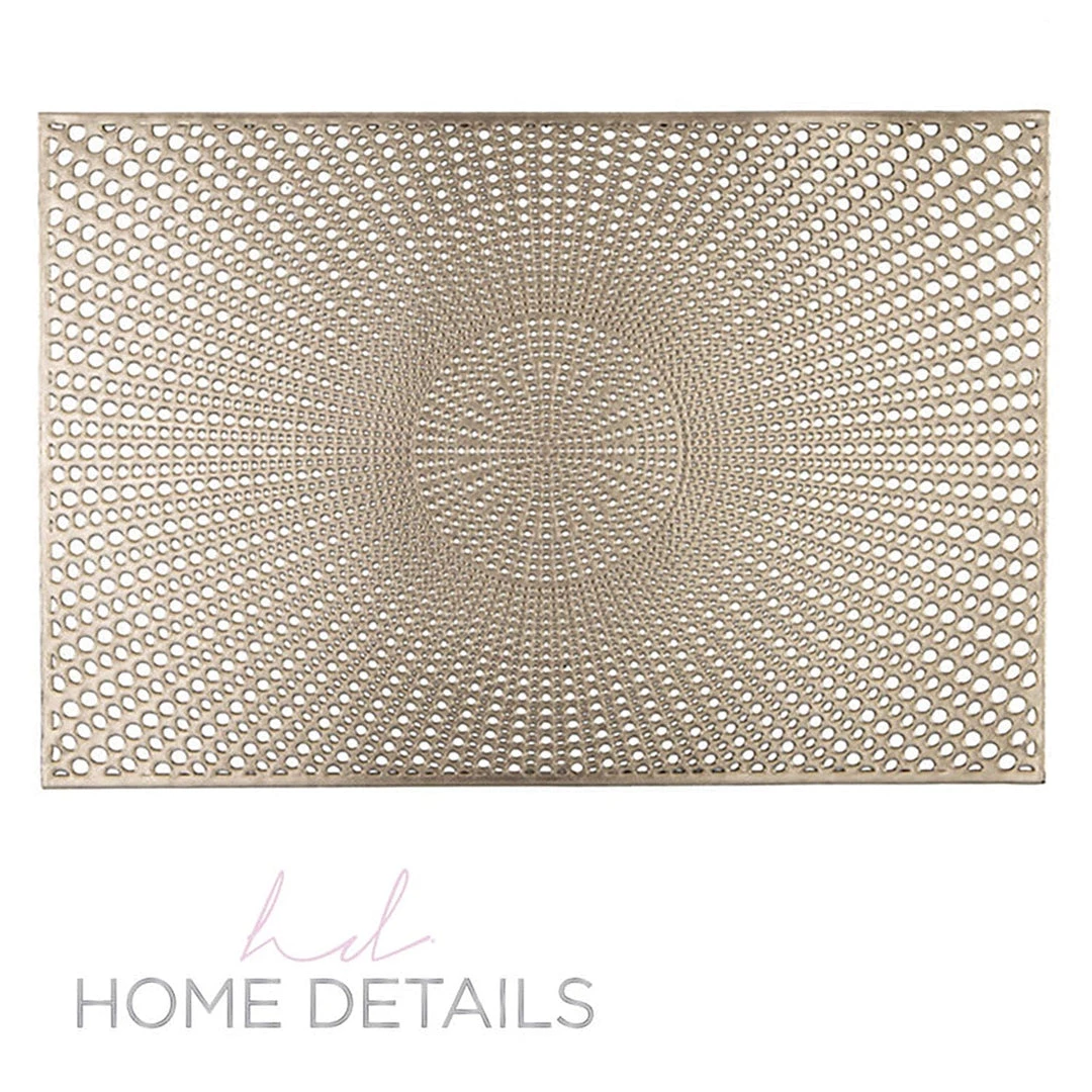 Add the finishing touch to your dining room table with the Home Details Santorini Metallic Placemat. The unique and glamorous design will add the right touch to help elevate your place settings. These placemats are perfect for your holiday and dinner parties. Create a picture-perfect place setting to impress your guests. The durable PVC material is long lasting and will protect your table from scratches. When done using, they are easy to clean by wiping them down with a cloth. No kitchen table setting is complete without the Home Details Placemats.