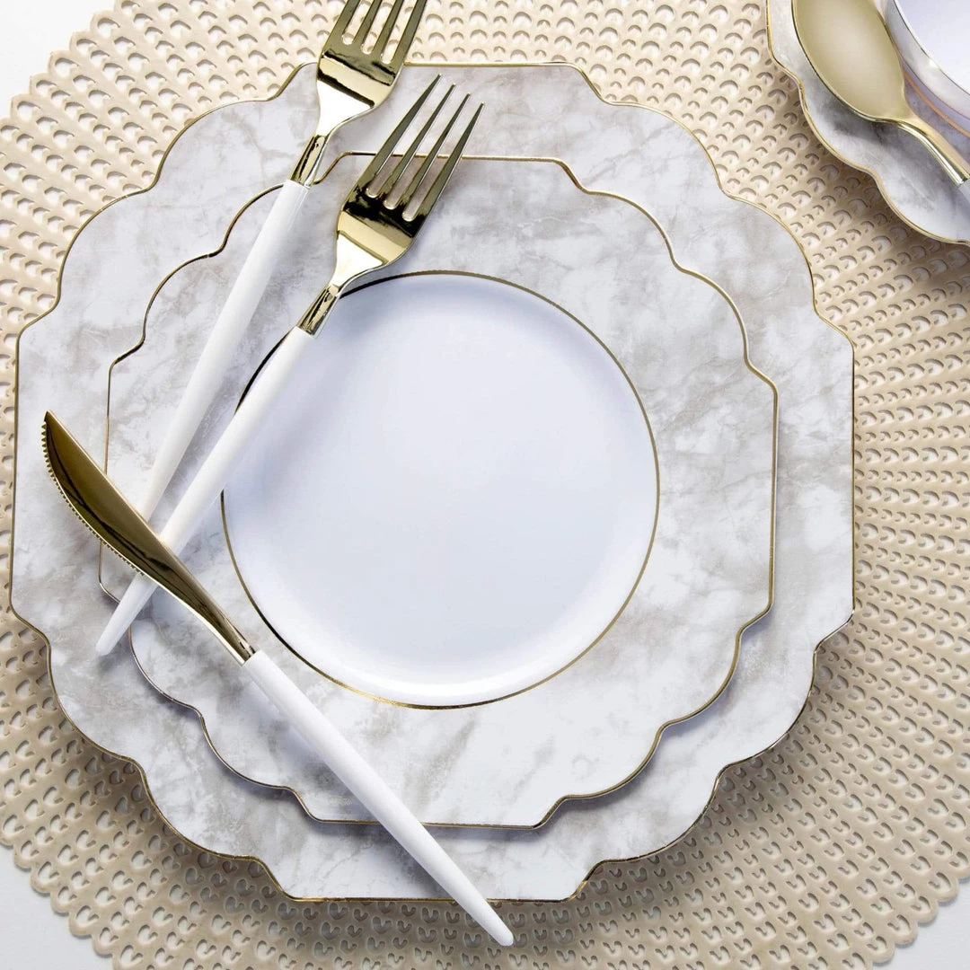 Scallop | Gold Accent | White • Marble