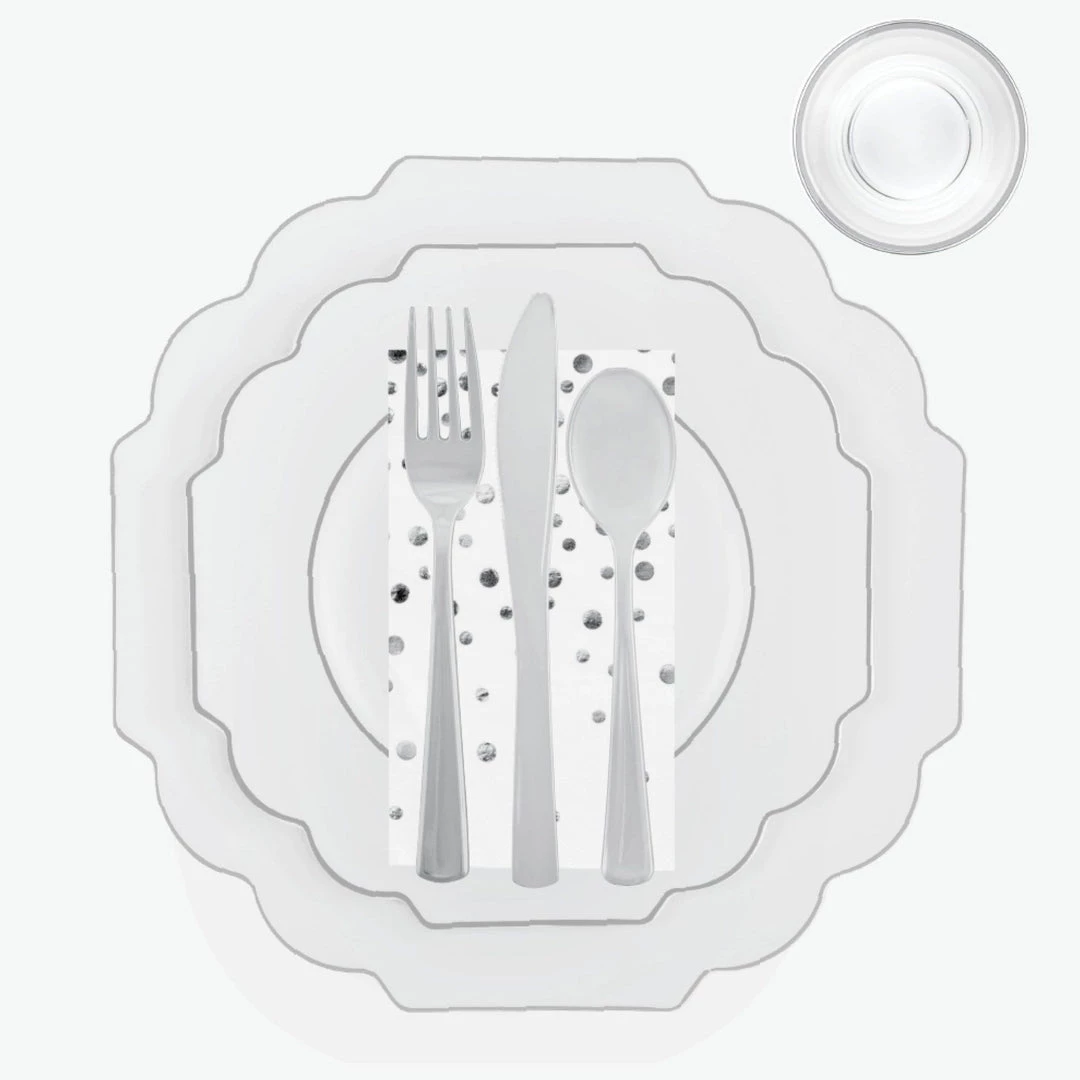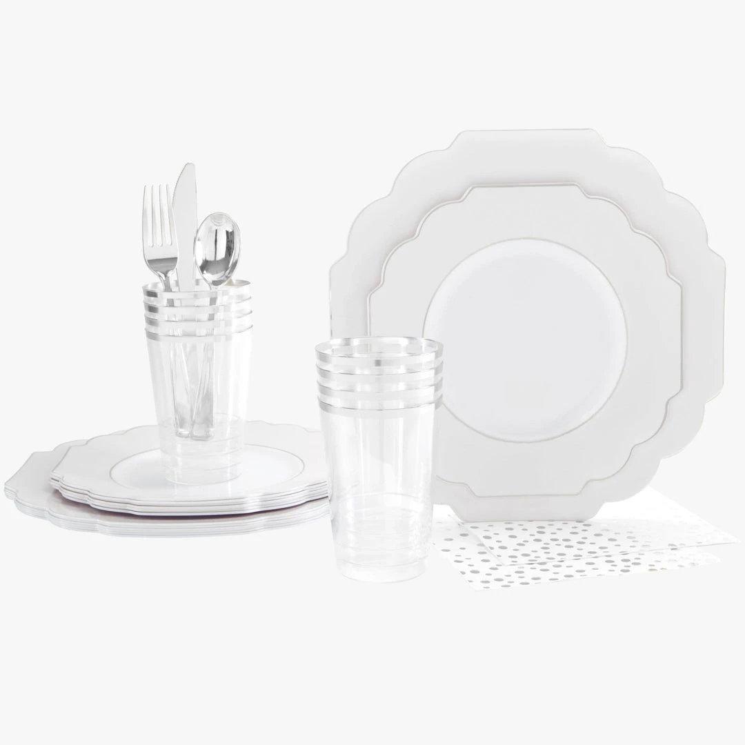 Solid Scallop | White • Silver | Metallic Accent | Party Box