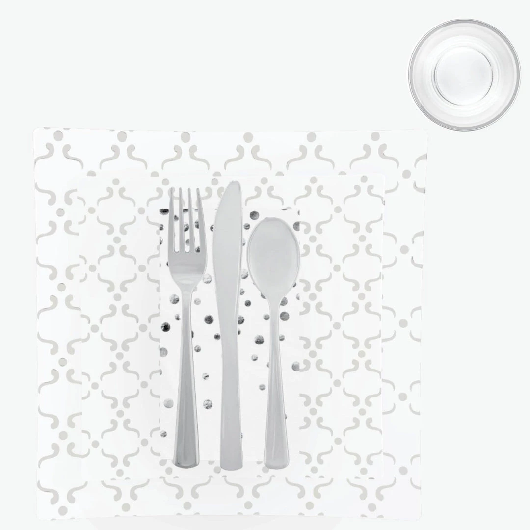 Square Pattern | White • Silver | Metallic Accent | Party Box