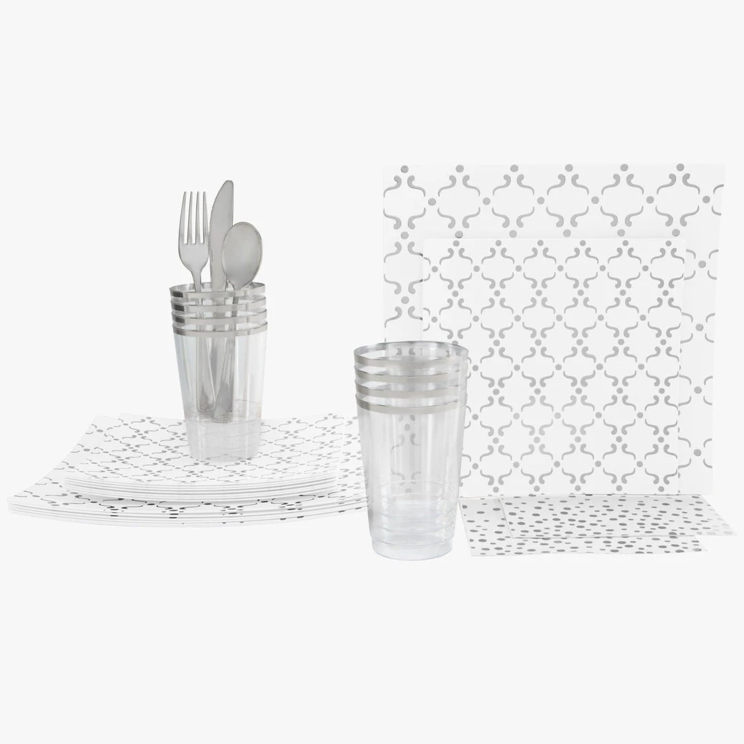Set For 8 | Dinner Plates | Salad Plates | Cutlery | Tumblers | Napkins