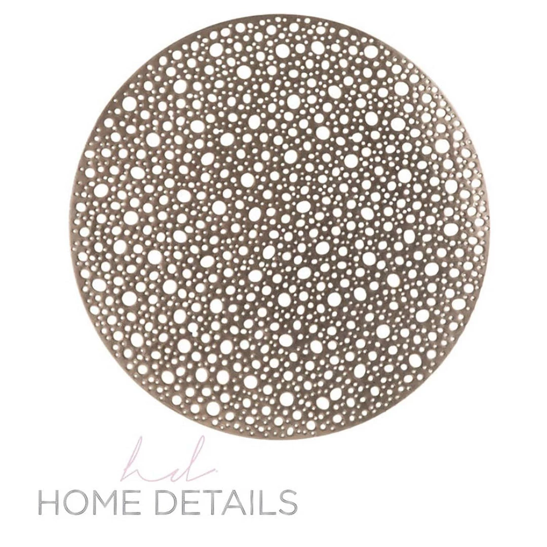 Add the finishing touch to your dining room table with the Home Details Round Moon Laser Cut Placemat. The unique and glamorous design will add the right touch to help elevate your place settings. These placemats are perfect for your holiday and dinner parties. Create a picture-perfect place setting to impress your guests. The durable PVC material is long lasting and will protect your table from scratches. When done using, they are easy to clean by wiping them down with a cloth. No kitchen table setting is complete without the Home Details Placemats.